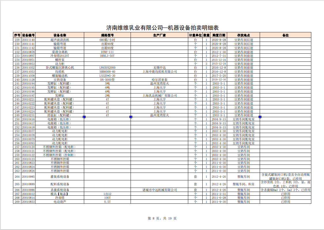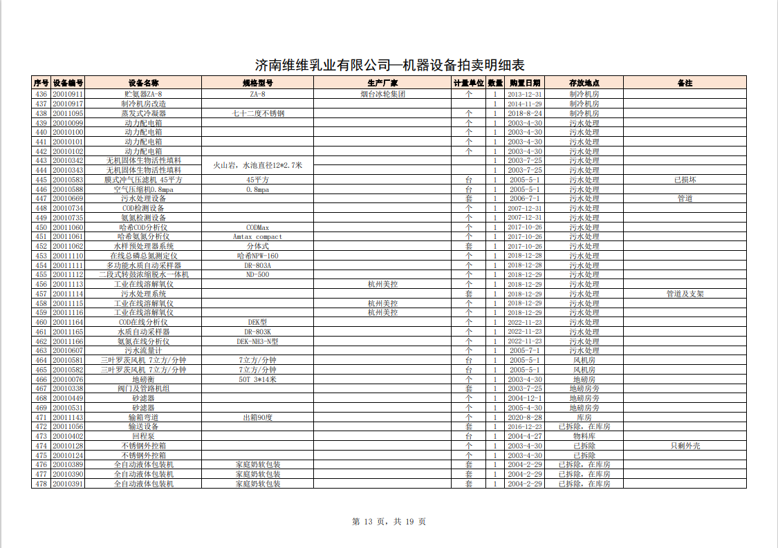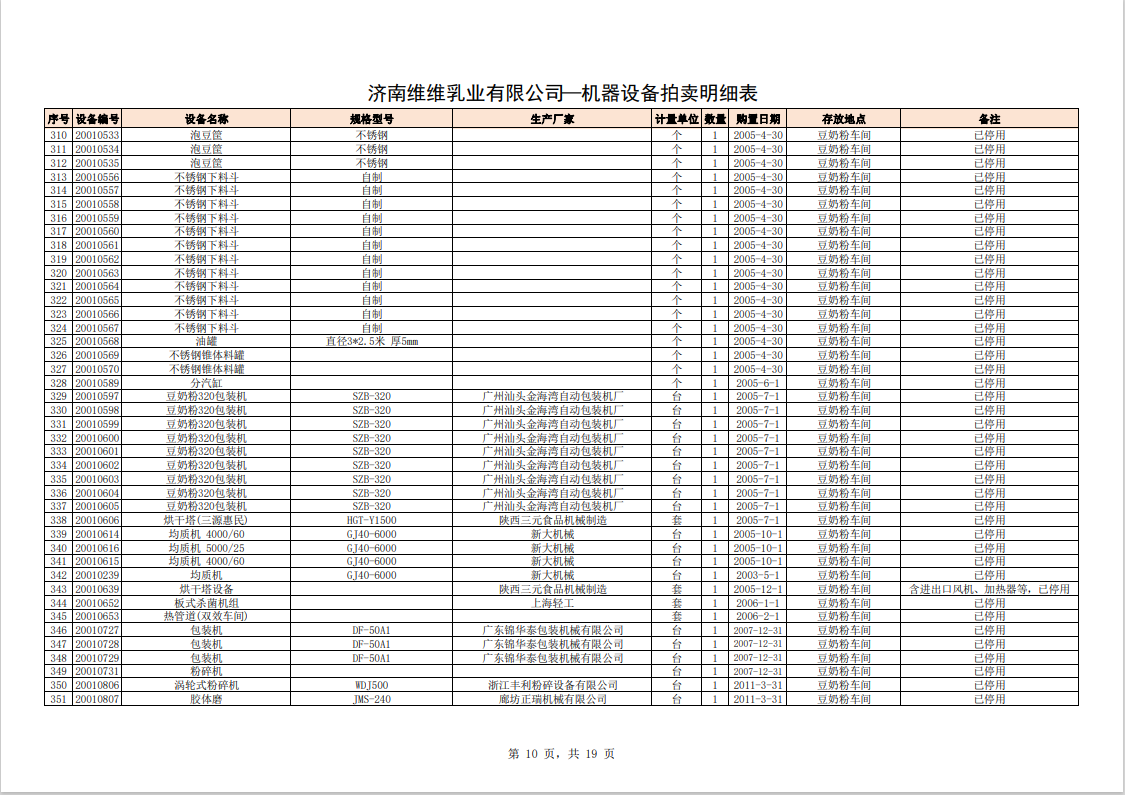 關注微信公眾號我公司受委托,定于2023年10月28日10時(網(wǎng)絡延時除外)在中拍平臺通過網(wǎng)絡競價方式公開拍賣:濟南維維乳業(yè)有限公司食品飲料生產(chǎn)加工設備及固定資產(chǎn)一批。