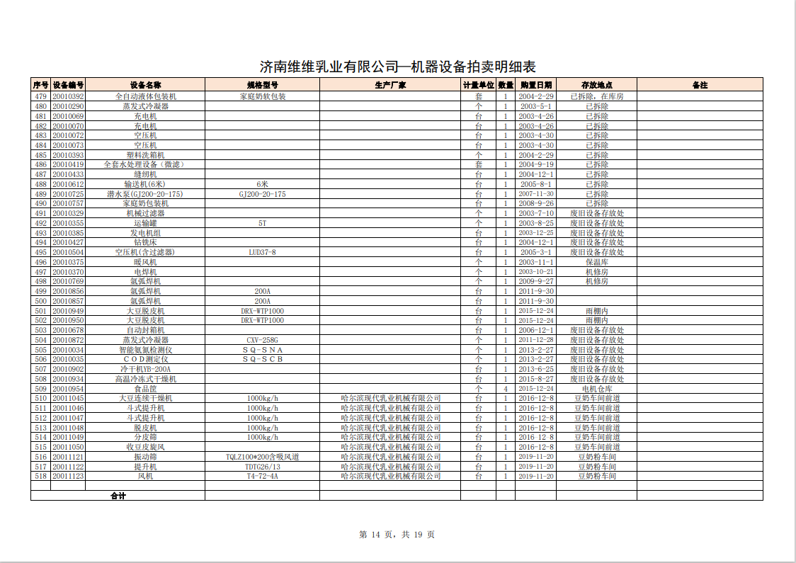 主要包含:牛奶生產(chǎn)設備、豆奶生產(chǎn)設備、利樂無菌灌裝設備、各型不銹鋼儲罐和發(fā)酵罐、鍋爐、烘干設備、空調、變壓器、配電設備、倉儲設備等。