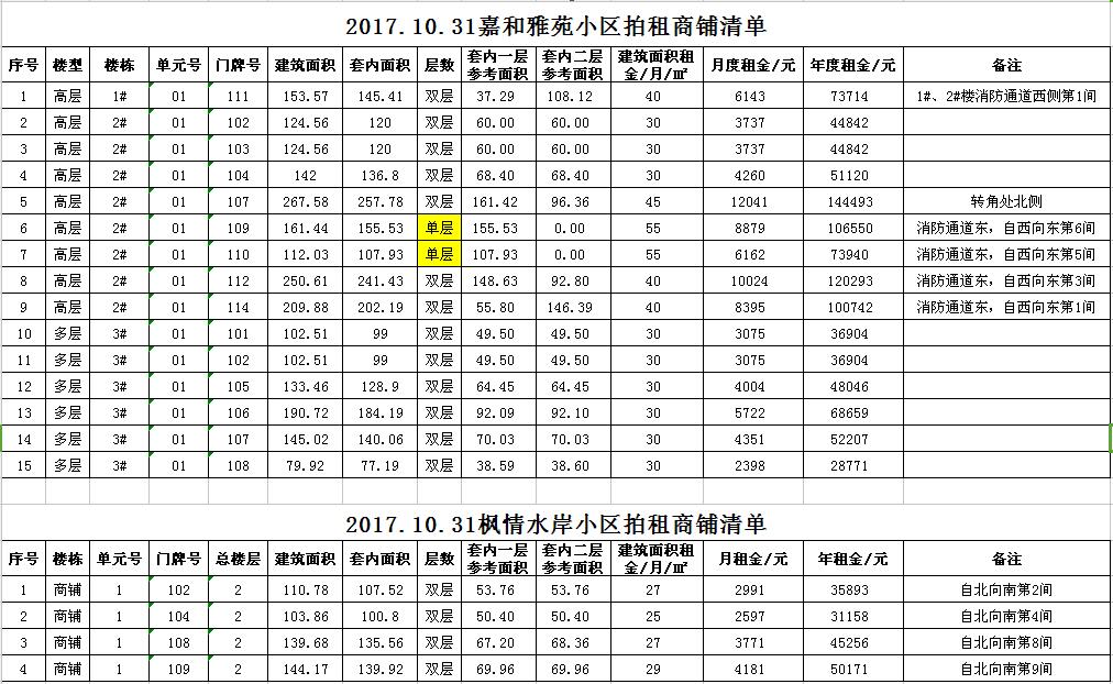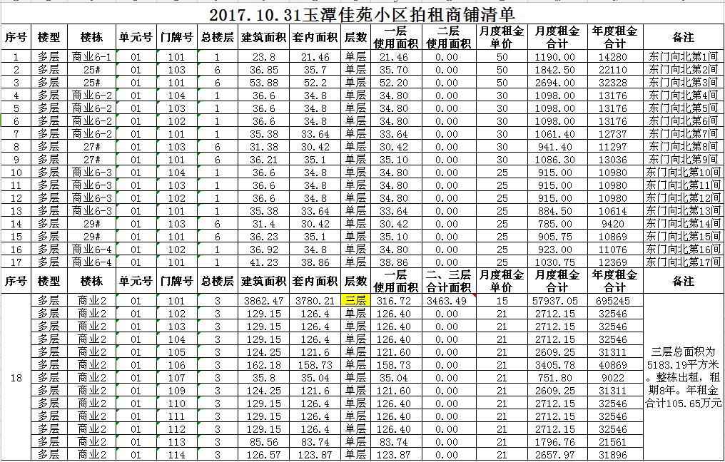 我公司受委托,定于2017年10月31日10時在本公司拍賣廳對以下小區(qū)門面房進行公開拍租: