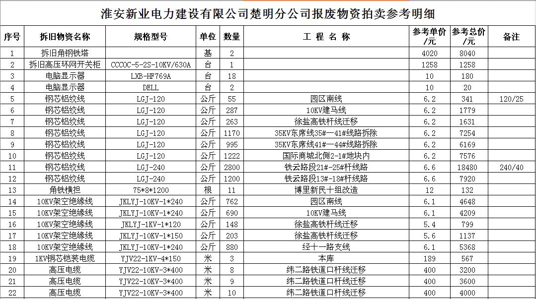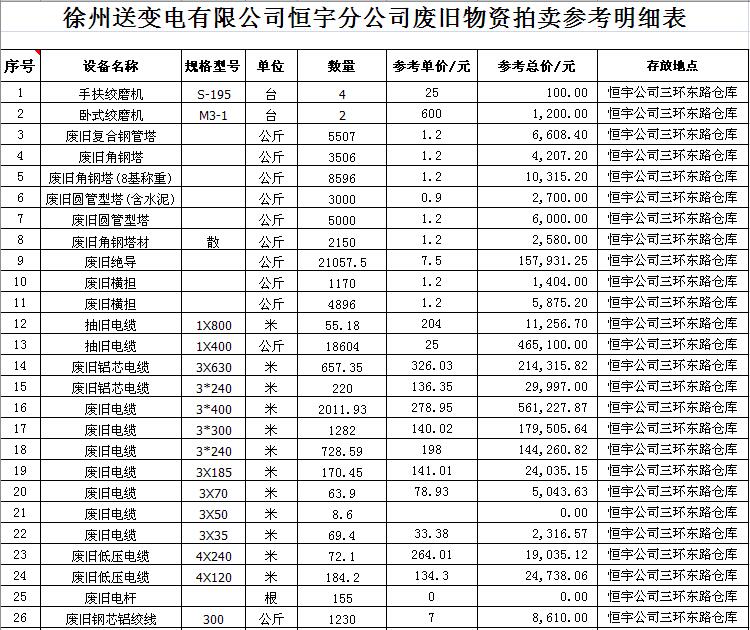 關(guān)注微信公眾號(hào)受江蘇徐供、淮供集體資產(chǎn)運(yùn)營中心委托,我公司將通過中國拍賣行業(yè)協(xié)會(huì)網(wǎng)絡(luò)拍賣平臺(tái)以網(wǎng)絡(luò)競價(jià)的方式公開拍賣以下單位的廢舊物資各一批: