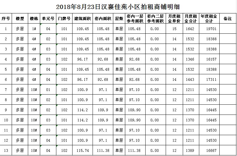 我公司受委托,定于2018年8月23日10時在中山南路55號本公司拍賣廳對以下小區(qū)商鋪公開拍租:湖西雅苑、和風(fēng)雅致、漢襄佳苑、尚景園、潤和園、嘉和雅苑等。商鋪共數(shù)十套,均為空房,面積分別為一百至數(shù)百平方米不等。租期均為3年。